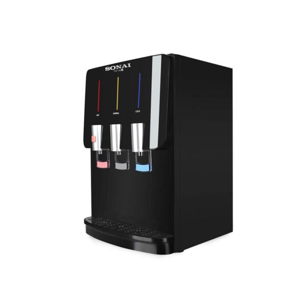 مبرد مياه ديسك من سوناي سعة 18.9 لتر وثلاث حنفيات لتوفير المياة الباردة و الساخنة و العادية لارضاء جميع مستخدميه يمكنك استخدامه في البيت او الشغل او اي مكان و طوال الوقت